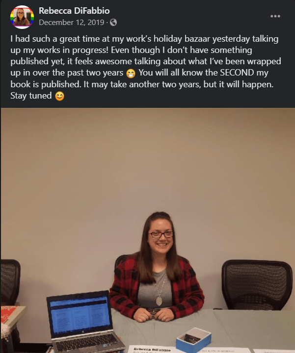 The answer is: maybe, yes. But when I really thought about my progress so far, I decided that I couldn’t be mad at not living up to what my past self hoped for. In that moment, I made a mental list of all that I had accomplished since I wrote that Facebook post. And even though I don’t have that book published yet, there are SO many other accomplishments I have made, and I actually feel good about the balance of work and rest in my life.